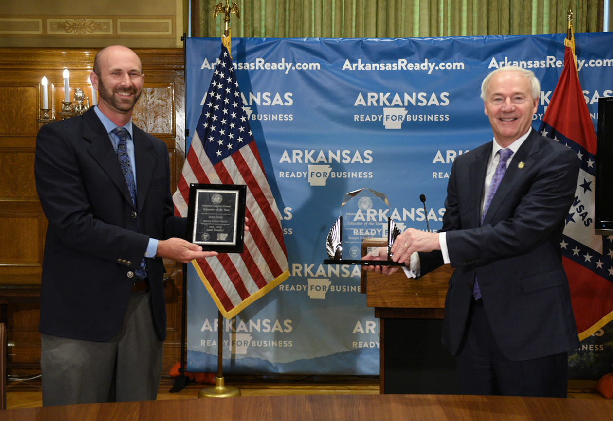 LITTLE ROCK — Gov. Asa Hutchinson and the Arkansas Department of Education are excited to announce that Sean Gray, a computer science teacher at Marion High School in Marion, Ark., was selected as the 2020 Arkansas Computer Science Educator of the Year. “Congratulations to Mr. Gray for being named the 2020 Arkansas Computer Science Educator of the Year,” Hutchinson said. “Over the last three years, Mr. Gray has spearheaded the district’s computer science efforts. He has applied for and received a national grant to improve computer science courses at his school, seeks out opportunities to grow professionally, and actively engages his students in computer science education. Mr. Gray hosts coding events that draw large attendance after school hours, connects his students with industry experts from around the world, and has led multiple field trips to area companies so students can see firsthand the important role of computer science in the workplace. He serves as a model of excellence in this very important field and is very deserving of this honor." Five state finalists, including Gray, were recognized by a press release in April.